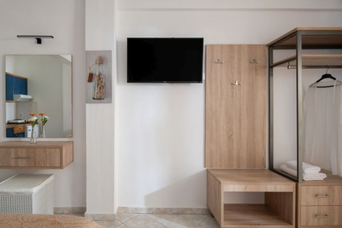 Das Haus Eleftheria besteht aus 8 Doppel-, Dreibett- und Vierbettstudios, die ihren Gästen folgende Annehmlichkeiten bieten: